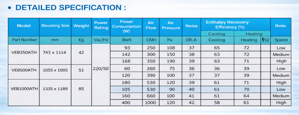 ● Constant Airflow Technology (Applicable Models: VEB150ATH / VEB250ATH / VEB350ATH)