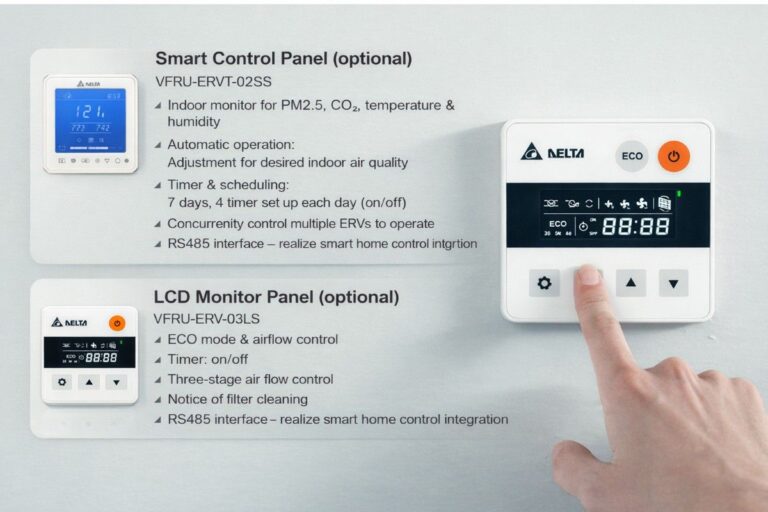 before delivering air into the indoor space. Besides that, the system can exhaust the indoor stale air to the outdoor environment at the same time, achieving the whole house ventilation. Users can obtain high-quality fresh air, even when the whole room is enclosed and airtight.