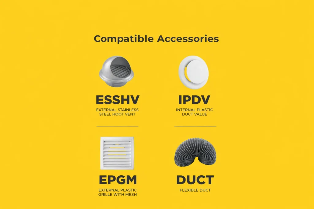 Available in 4 sizes to suit 100, 150, 200, and 250mm duct.